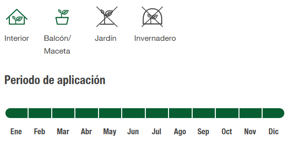 En días muy calurosos el tratamiento se debe realizar por la tarde para evitar producir daños a las planta ornamentales. Si el producto se va a aplicar sobre plantas en floración, realizar previamente una prueba sobre una de las plantas antes del tratamiento. No tratar las siguientes especies si se encuentran en floración: Orquídeas, violeta africana, alegría del hogar, primorosa y begonias.